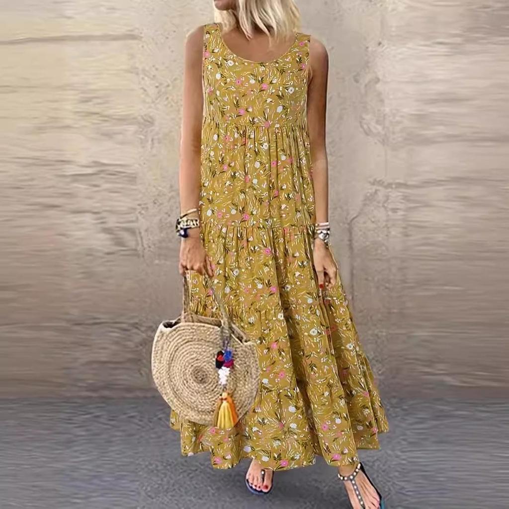 Женское цветочное платье на тонких бретельках без рукавов, европейский и американский стиль, 2024
