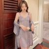 Сексуальная женская летняя пижама из ледяного шелка, тонкий стиль, с нагрудной подушечкой, стиль чистой страсти, ночная рубашка на бретельках, кружево, красивый вырез на спине, новый стиль