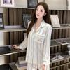 Длинная женская пижама в корейском стиле с длинным рукавом из ледяного шелка, простая полосатая пижама, модный костюм для осени и зимы, высококачественная одежда для дома