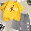 Летний Детский Комплект с Коротким Рукавом Принт 'Мастер Баскетбола' Спортивная Футболка+Шорты Комплект из 2 предметов Модный Спортивный Костюм для Мальчиков и Девочек