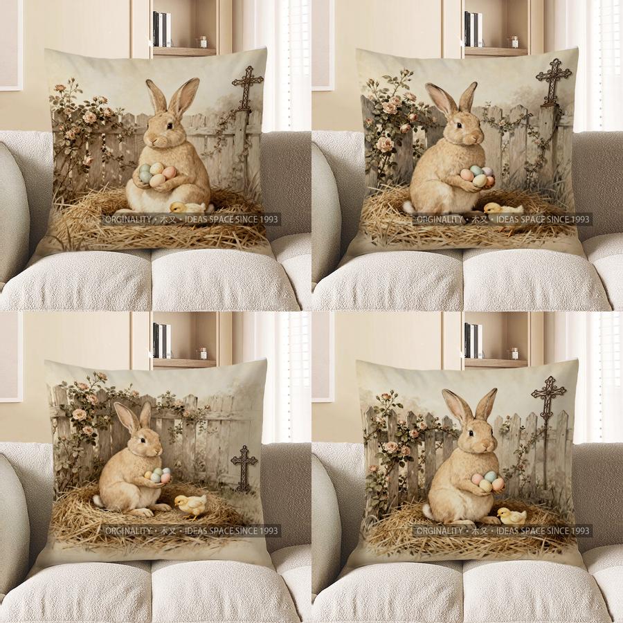 2D Кролик с яйцами и крестом Пасхальная тематика Подушка Чехол для подушки Подходит для дивана Спальни Автомобиля Чехол для подушки