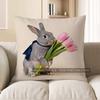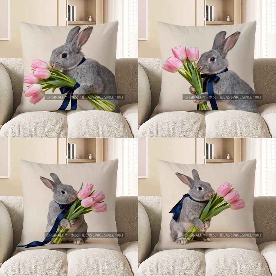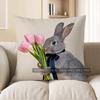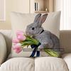 2D Серый кролик с розовыми тюльпанами Наволочка Чехол для подушки Подходит для дивана Спальни Автомобиля