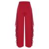 Женские танцевальные брюки с высокой талией и широкими штанинами, с воланами, драпировкой, для сценических выступлений, струящиеся