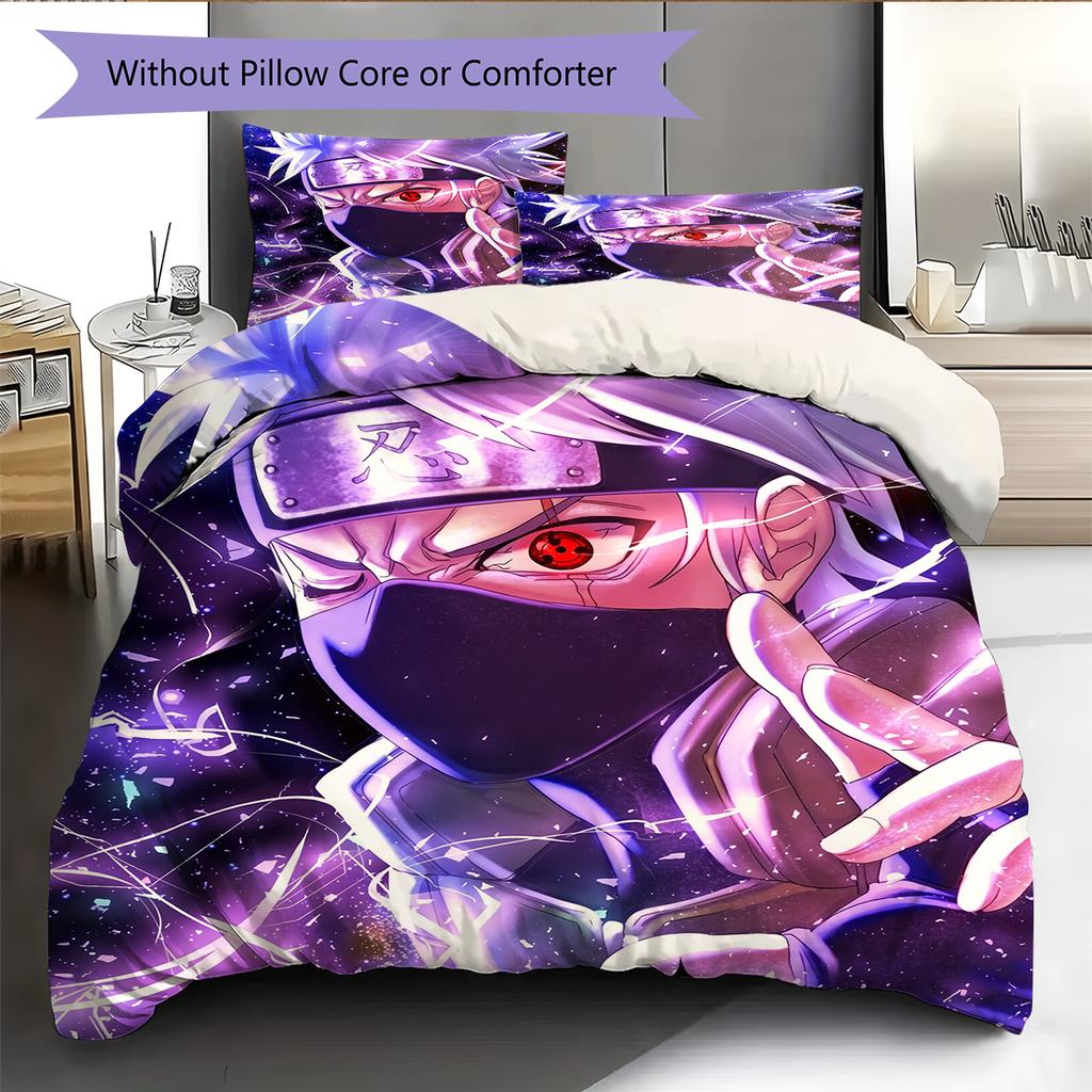 Хатаке Какаши Узор Наруто Постельное белье Домашний декор Подарок на день рождения (1 пододеяльник + 2 наволочки, без наполнителя)
