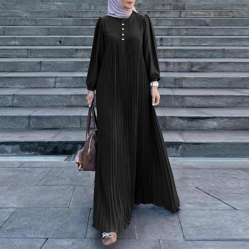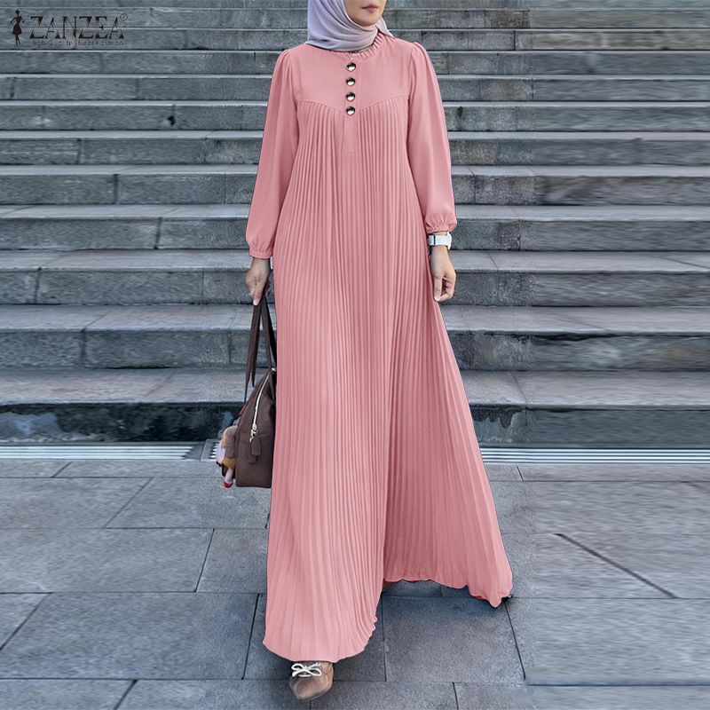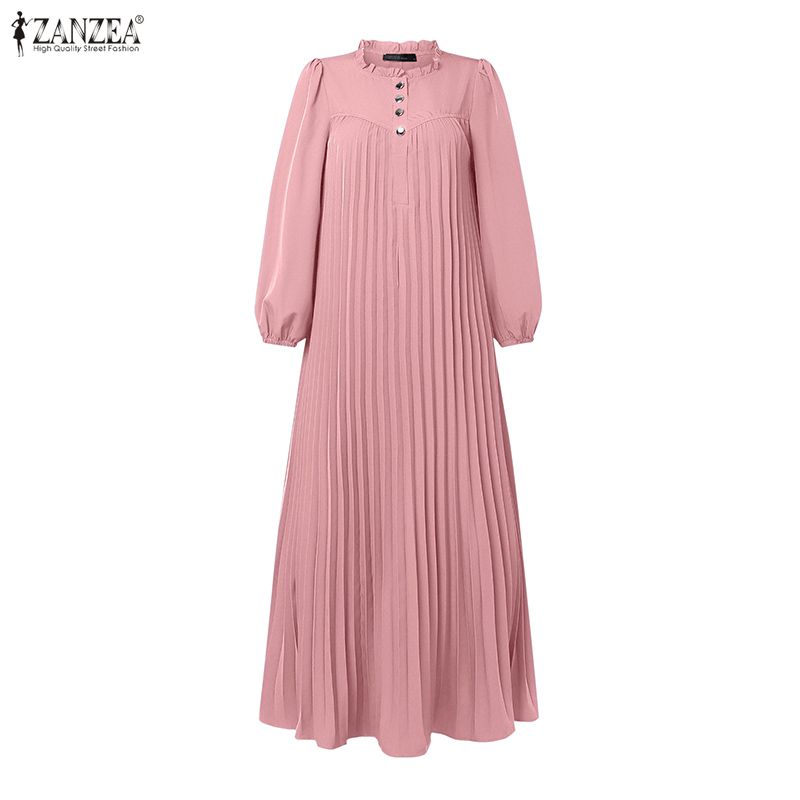 ZANZEA Женское повседневное платье с круглым вырезом и длинными рукавами, плиссированное длинное платье