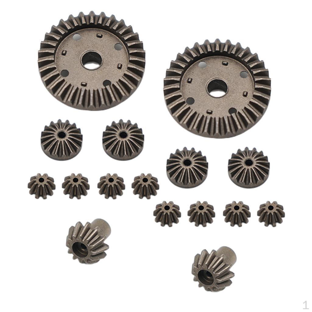Передний дифференциал - длина: 57мм, Ширина: 28мм, включая аксессуары: Большая коническая шестерня *1 (30 т), Малая коническая шестерня *1 (12 т), Большая планетарная шестерня *2 (16Т), Малая планетарная шестерня *4 (10 т), Подшипник *2 (7 * 11 * 3 мм), Металлический корпус дифференциала *1 (18,5 * 18,5 мм), Дифференциальная чашка*2, с винтами