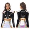 S-4XL Женский Костюм Косплей Певицы Танцовщицы С Длинным Рукавом Наплечники Молния спереди Металлический Пэчворк С блестками Укороченный Топ Куртка