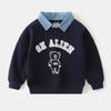 Детские свитеры-двойки с флисовой подкладкой Детская одежда Поло с джинсовым воротником для мальчиков Одежда из полярного флиса с отложным воротником для мальчиков