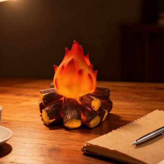 Изготовленный из высококачественной смолы, декоративный искусственный костер излучает реалистичный мерцающий эффект пламени, который украшает любое пространство.. Идеально в качестве уникального подарка на праздники или особые случаи, безопасно для детских комнат и палаток, обеспечивает уютное освещение без резкой яркости.