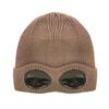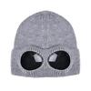 Эта однотонная вязаная шапка сочетает в себе стиль и функциональность, отличаясь уникальным дизайном с прикрепленными очками для модного образа.. Изготовлено с использованием изысканной технологии плетения, обладает отличными ветрозащитными и тепловыми свойствами, что делает его идеальным для холодной погоды..