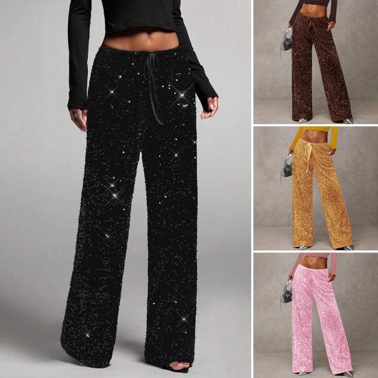 Эти женские повседневные брюки изготовлены из высококачественного полиэфирного волокна, обеспечивающего мягкое, приятное к коже ощущение для комфорта в течение всего дня.. Эти брюки с гламурным дизайном с высокой посадкой, украшенные изящными пайетками, добавят искрящуюся нотку любому наряду..