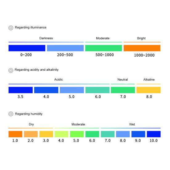 Оптимизируйте здоровье и рост растений: Позволяет точно определить, когда поливать растения, отрегулировать pH-баланс почвы и проверить, получают ли растения достаточно солнечного света, эффективно поддерживая здоровье и качество вашей зелени для процветающего роста.