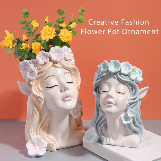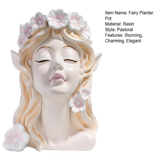 Fairy Head Planter Angel Girl Face Flower Pot Resin Decorative Vase Indoor Cactus Pot for Home Office Desk Garden