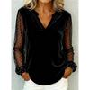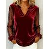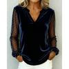 Элегантная блузка с V-образным вырезом, сетчатой и кружевной вставкой, женская, с длинным рукавом, бархатная, с принтом в виде точек, свободная, весенне-осенняя, офисные топы, повседневные, простые футболки, одежда