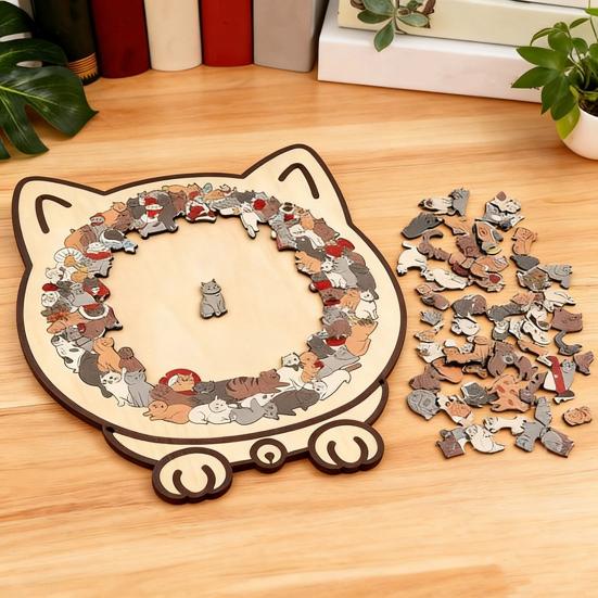 Уникальные пазлы в форме кошек: Каждый элемент этого деревянного пазла искусно вырезан в виде различных кошек, передавая игривую и живую сущность кошачьих.. Этот креативный дизайн превращает сборку пазла в увлекательное путешествие по миру кошек, делая его особенно привлекательным как для любителей пазлов, так и для любителей кошек.
