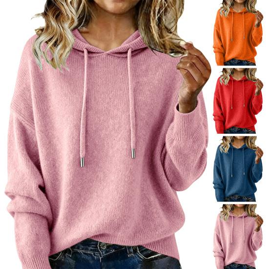 Этот женский вязаный свитер свободного кроя с длинными рукавами и капюшоном на завязках идеально подходит для многослойной одежды осенью и зимой.. Изготовлено из высококачественной, мягкой и теплой ткани, оно обеспечивает комфорт и уют, сохраняя ваш стиль..