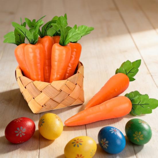 Универсальное украшение для различных обстановок: Эта имитация моркови идеально подходит для различных случаев и мест.. Используйте его как праздничное пасхальное украшение или как жизнерадостный акцент на кухнях, в гостиных или детских комнатах. Его яркий цвет и реалистичный стиль приносят свежесть и жизненную силу в любую домашнюю обстановку круглый год.