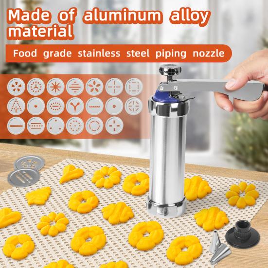 Пресс для печенья из алюминиевого сплава с дисками и насадками Легко сжимаемый прибор для приготовления печенья Безопасный для мытья в посудомоечной машине Инструмент для выпечки для домашнего печенья, кексов, выпечки