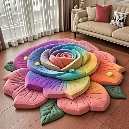 Ультрареалистичная трехмерная форма цветов: Изготовленный с тщательным вниманием к деталям, коврик с лепестковой текстурой и цветочной формой повторяет гигантскую розу в полном расцвете.. Этот художественный дизайн, напоминающий инсталляцию, добавляет глубину и визуальный интерес, создавая захватывающий фокусный центр, который улучшает атмосферу любого помещения.