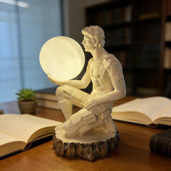 Изготовлен из высококачественной смолы, он обеспечивает долговечность и безопасность, идеально подходит для письменных столов, прикроватных тумбочек или книжных полок.. Сочетая уникальный дизайн с практичностью, этот художественный ночник-статуэтка обеспечивает мягкое, теплое свечение, которое создает уютную атмосферу, идеальную для работы или чтения..
