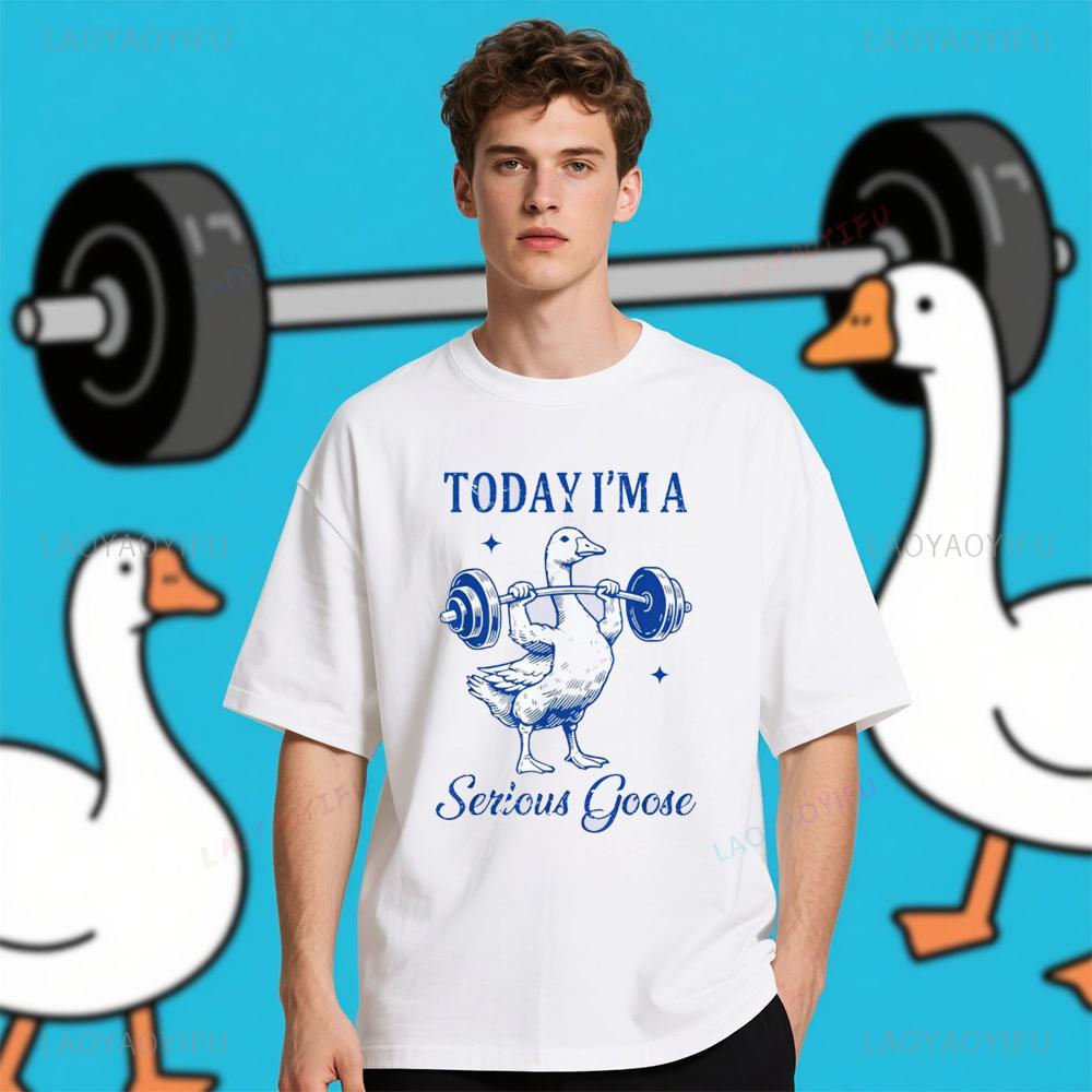 Сегодня я Серьезный Гусь Смешной Гусь Поднимает Веса Тренажерный Зал Печатная Футболка Топы Самодисциплинированный и Фитнес Гусь С коротким рукавом