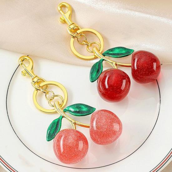 Keychain Pendant Resin Cherry Chain with Branches Secure Lobster Golden Alloy Design Key Clasp Anti-Lost Hook — купить товар онлайн с бесплатной доставкой по всему миру!