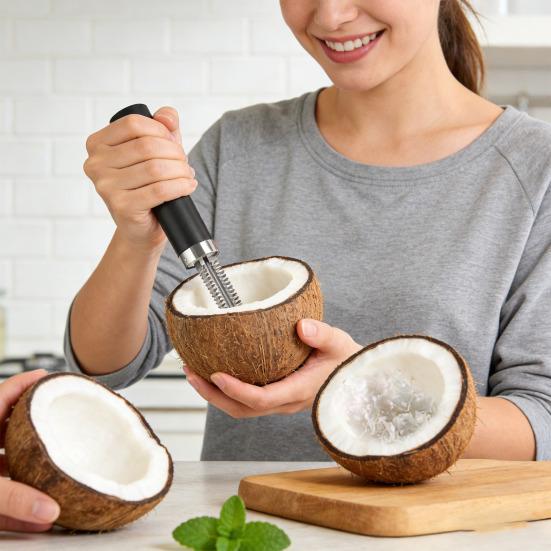 Electric Coconut Grater Machine Peeler Shredder Steel Rotating Blade with Stainless Handheld Spatula Easy One-Button Operation