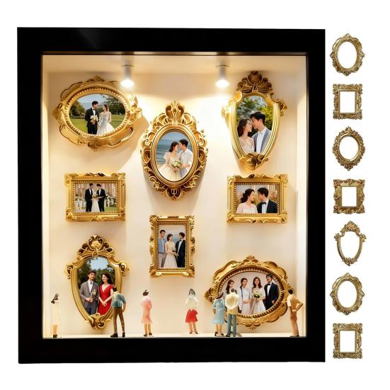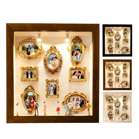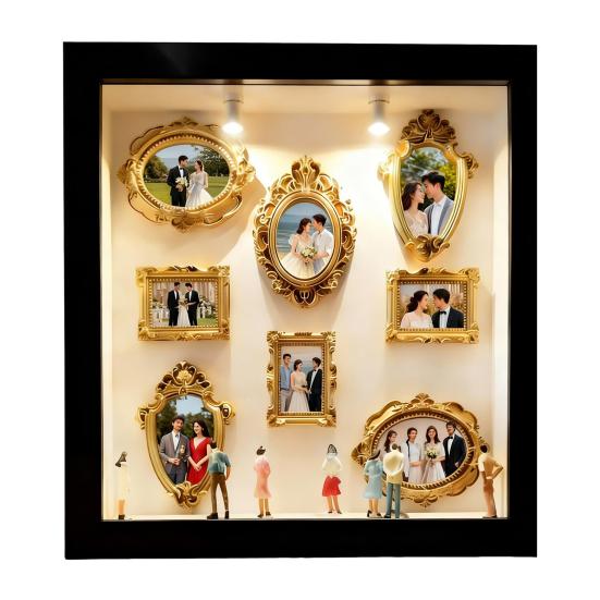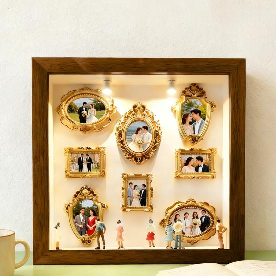 This custom picture frame shade box is perfect for commemorating special moments like anniversaries and weddings. Featuring mini frames, charming figurines, and soft lighting, it offers a creative and decorative way to showcase your cherished memories. Ideal for home, courtyard, balcony, garden, or windowsill, the silhouette box adds a warm, personal touch to any space.