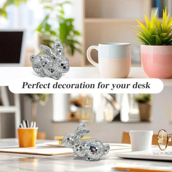 Mirror Disco Ball Rabbit Ball Sitting Easter Wedding Party Bunny Figurine Figurine Mirror Home Office Desktop