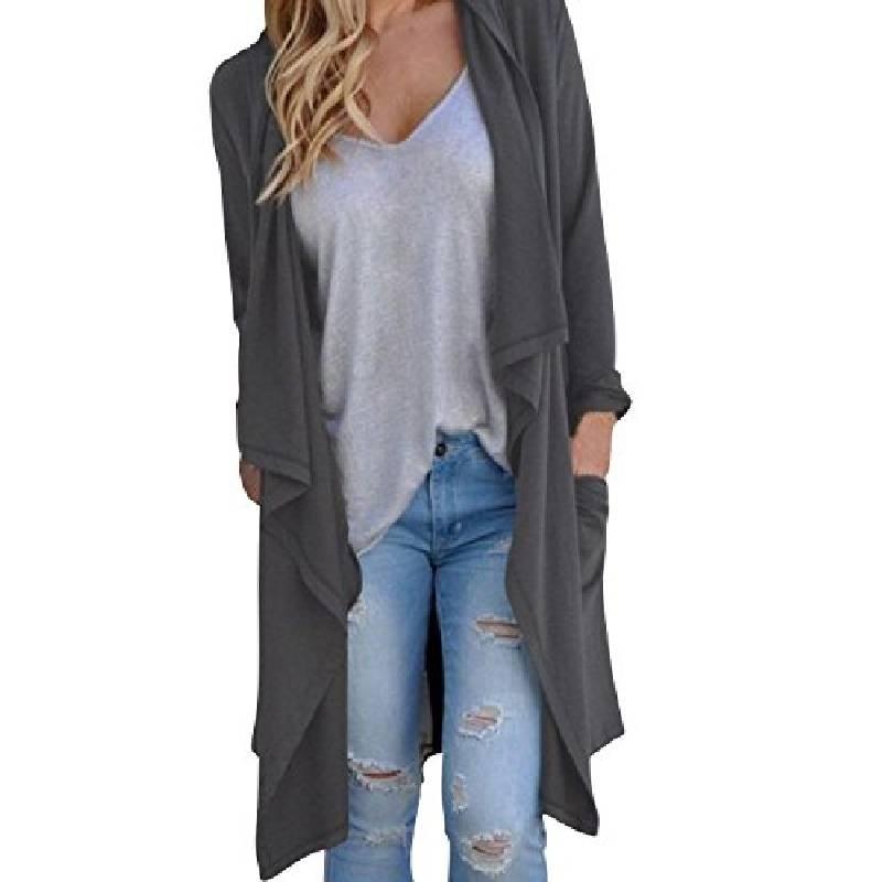 Повседневный хлопковый вязаный кардиган женский с открытой передней частью, свободного кроя, с длинными рукавами, топ для универсального базового гардероба