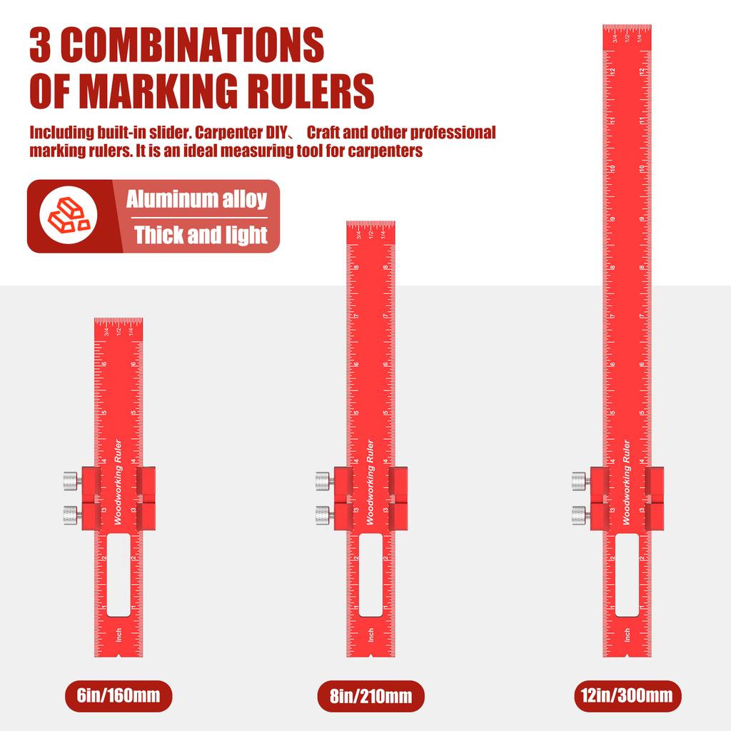 3Pcs Woodworking Ruler Precision 6 8 12 Inch Wood Marking Ruler T Track Woodworking Scribing Ruler Woodworking Measuring Ruler