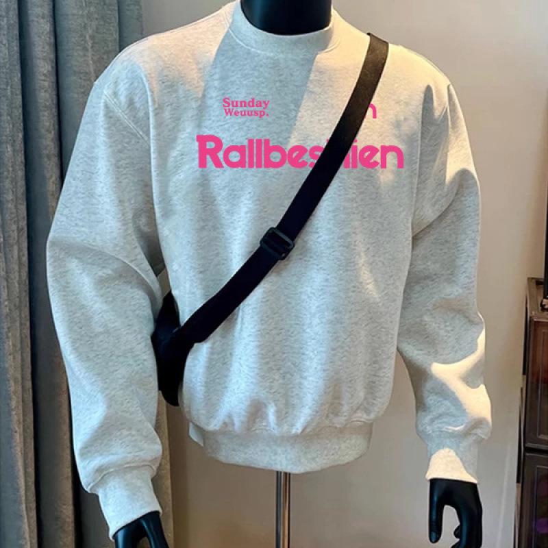 American Trendy Round Neck Pullover Sweatshirt: Autumn/Winter Creative Letter Design with Plus Velvet Lining