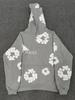 Худи из плотного хлопкового денима с цветочным принтом - Модная американская уличная куртка для мужчин