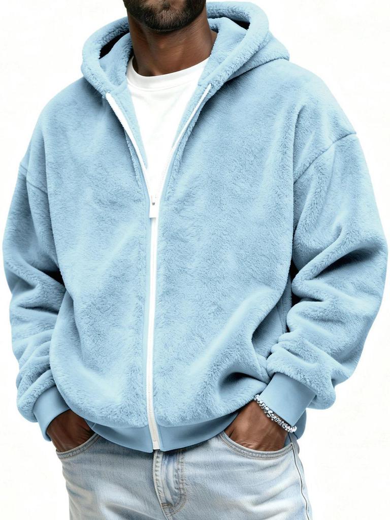 Мужской плюшевый кардиган-худи с капюшоном на молнии, осень 2025