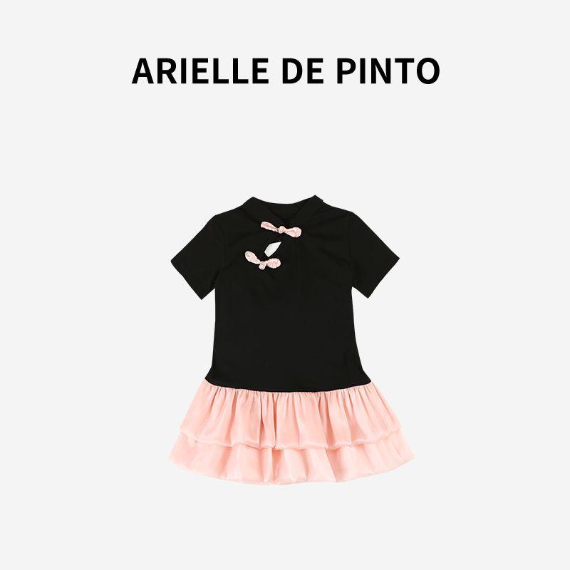 French Arielle De Pinto Girls' Chinese Style Butterfly Backless T-Shirt Dress Summer Dress for Girls