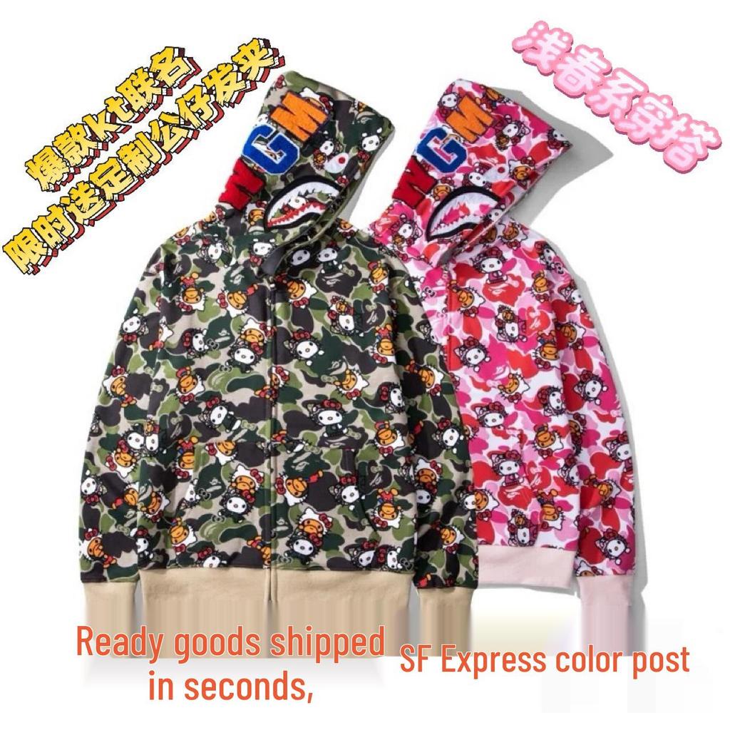 Men's and Women's Casual Loose Fit Shark Hello Kitty Print Hoodie Jacket — купить товар онлайн с бесплатной доставкой по всему миру!