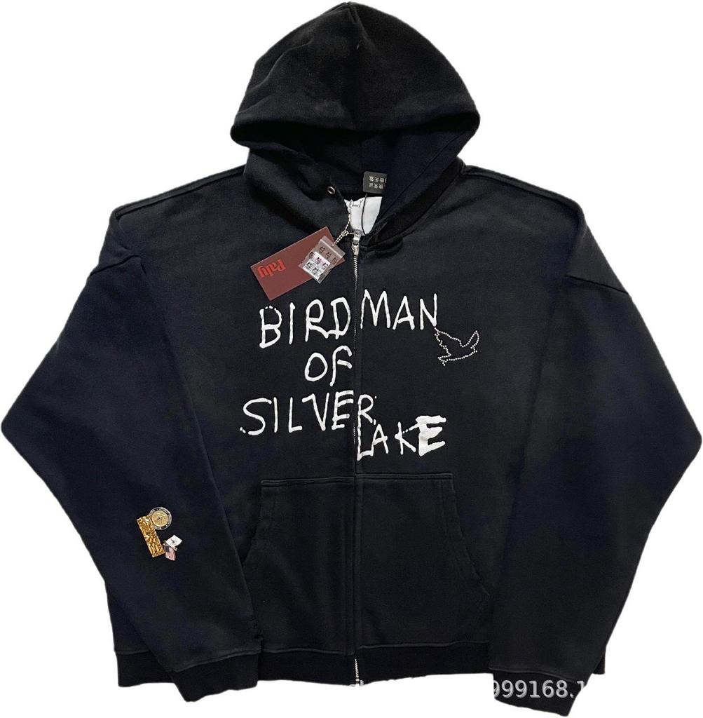 2025 Autumn/Winter Distressed Letter Print Zipper Hoodie One Piece