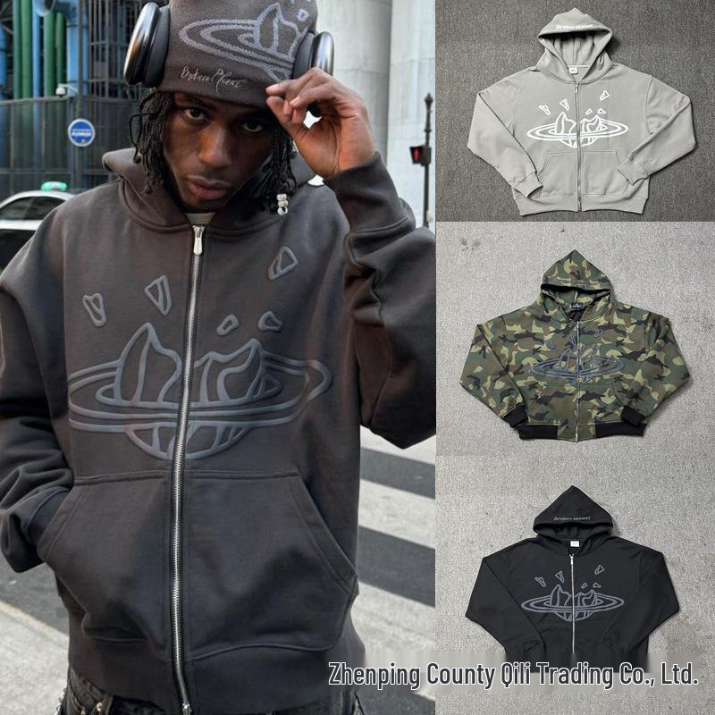 American Trendy Multicolor Graphic Double-Layer Cardigan Hoodie