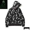 Модный Худи APE - Куртка-бомбер на молнии с камуфляжем "Акула", Версия для родителей и детей