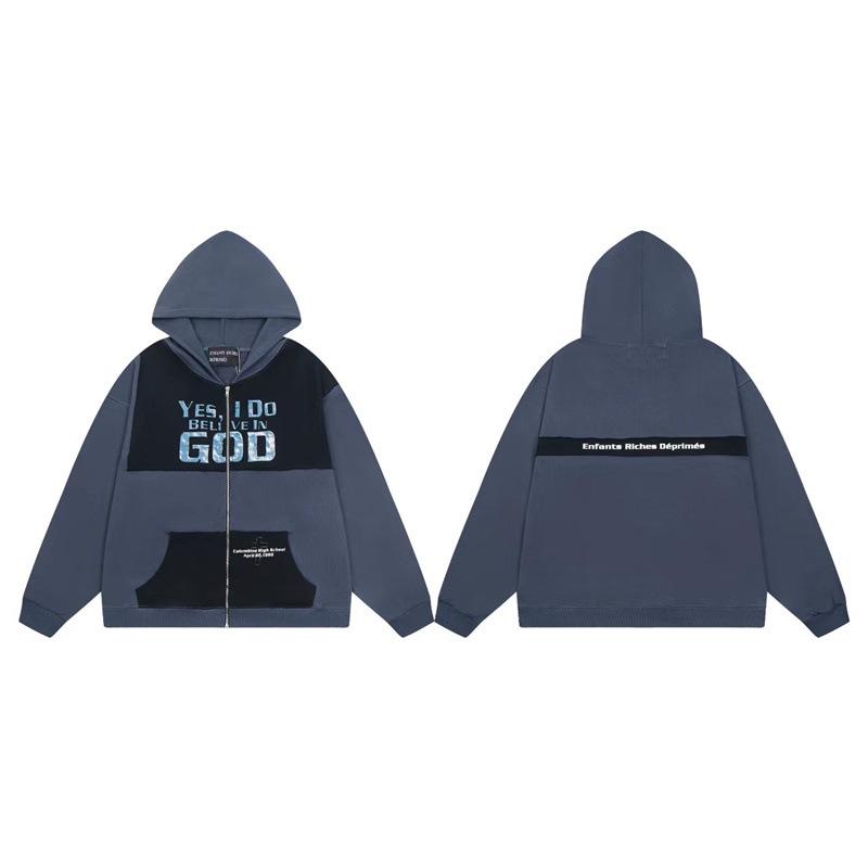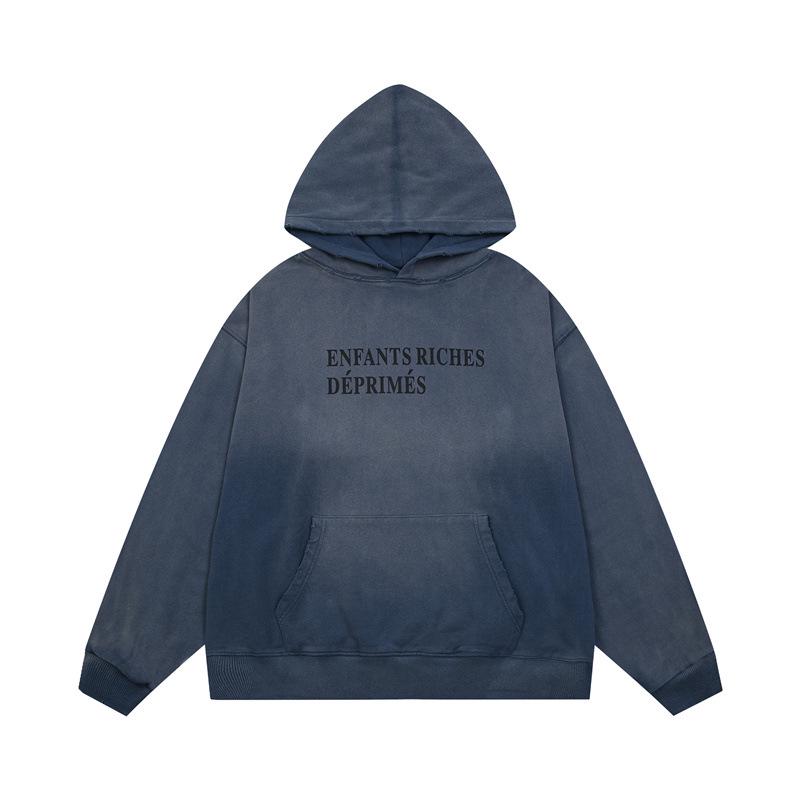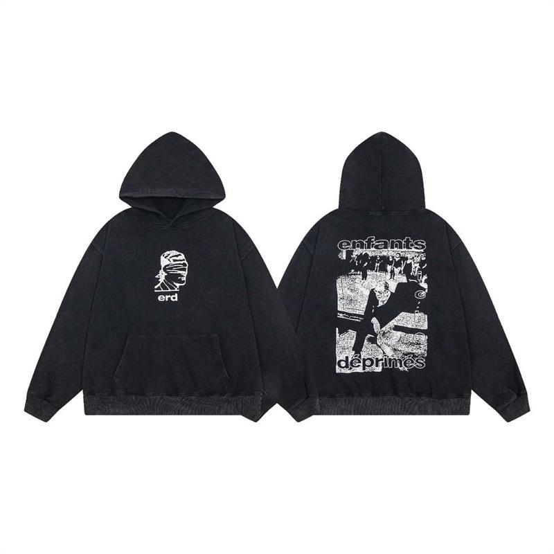 ERD Melancholy Rich Hoodie: European-American Streetwear, Loose Fit, Zipper, Short Sleeve