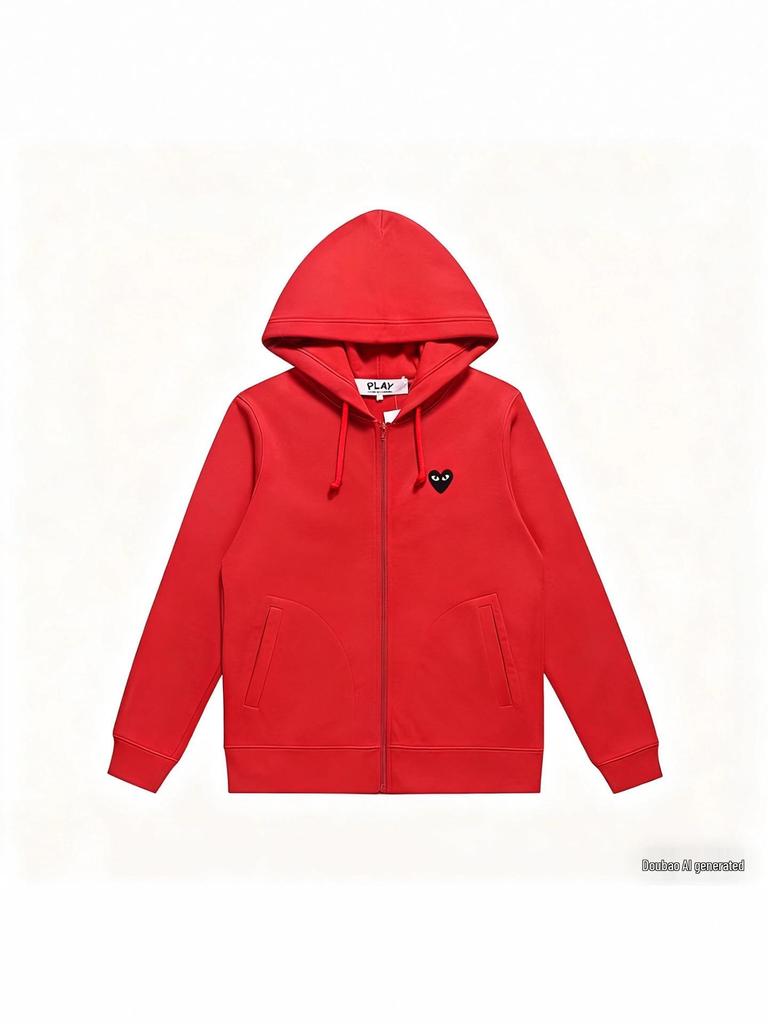 PLAY Love Heart Embroidery Zipper Cardigan Hoodie - Men's Plus Velvet Autumn Hooded Jacket 2025 Model