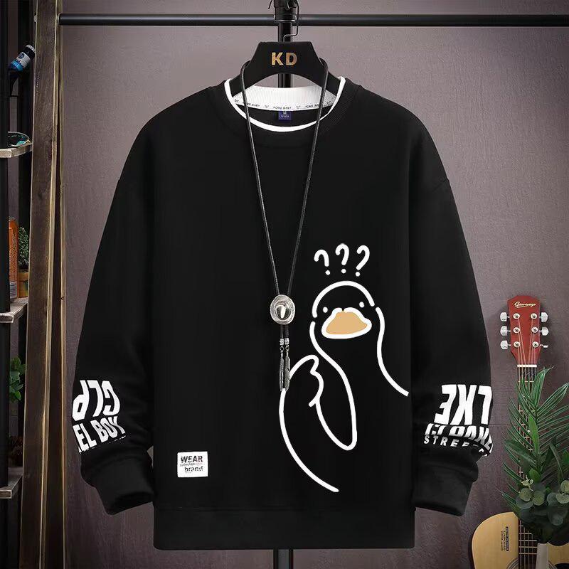 Испытайте максимальный комфорт и стиль с этим универсальным свитшотом с круглым вырезом. Этот топ с длинным рукавом, украшенный модным принтом с уткой и знаком вопроса, имеет круглый вырез и станет идеальным дополнением к вашему повседневному гардеробу.. Тонкий полиэстеровый материал обеспечивает легкую и дышащую посадку, а свободный силуэт создает расслабленное и комфортное ощущение.. Создайте современный образ, который легко сочетается с любой одеждой, будь то отдых дома или прогулка с друзьями.