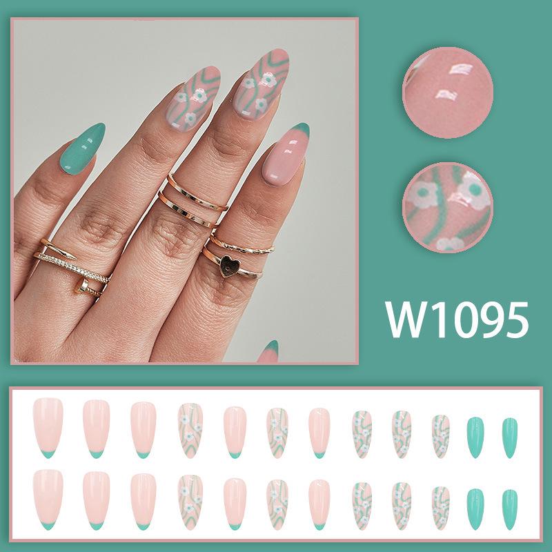 Summer Fresh Light Green Floral French Girly Almond Nail Art Tips — купить товар онлайн с бесплатной доставкой по всему миру!