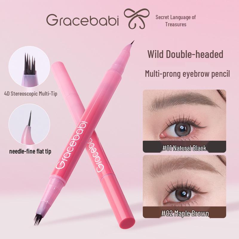 Двусторонний стойкий карандаш для бровей Gracebabi для натуральных, выразительных бровей - Подходит для начинающих и устойчив к выцветанию.