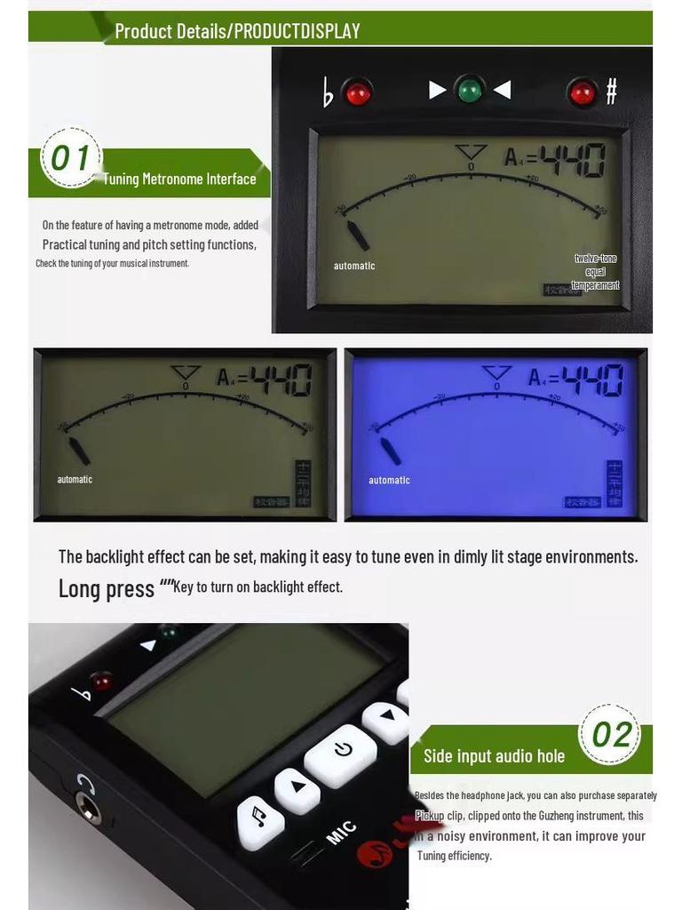 Zhuo Le Guzheng Pitch Tuner & Metronome for D/G/C/F/Bb/A Tuning