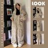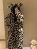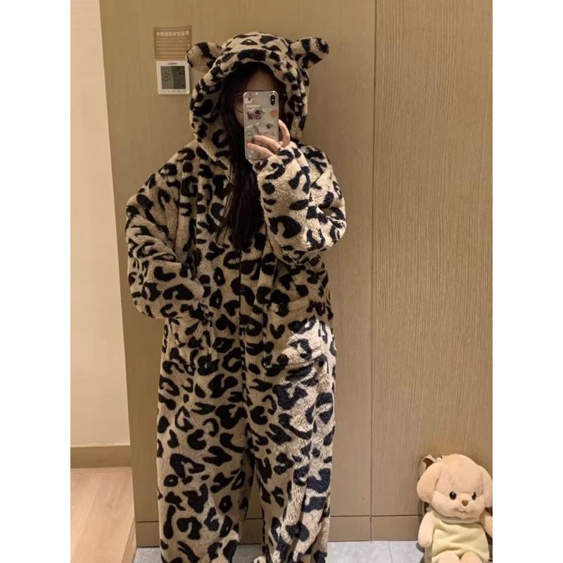 Милый комбинезон-пижама с леопардовым принтом для девочки, осенне-зимний, фланелевый, толстый, теплый, с капюшоном, домашняя одежда, можно носить как верхнюю одежду, домашняя одежда, удобный комбинезон