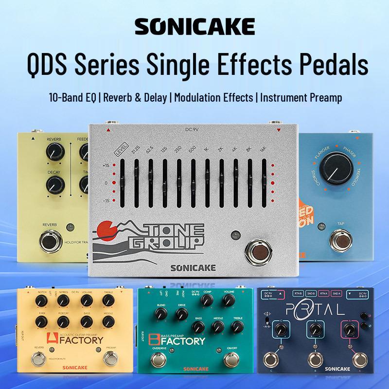 Педаль эффектов для электрогитары Sonicake QDS: Акустический предусилитель, Басовый дилей, Реверберация, Десятиполосный эквалайзер