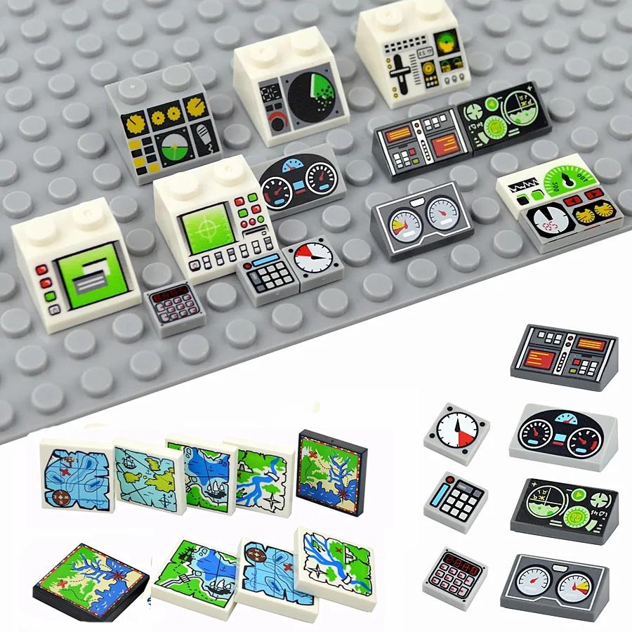 Slope Printed Roof Tile 1x2 2x3 1x1 Bricks Meter Dash Board Control Center Smooth Building Blocks Compatible 85984 3039