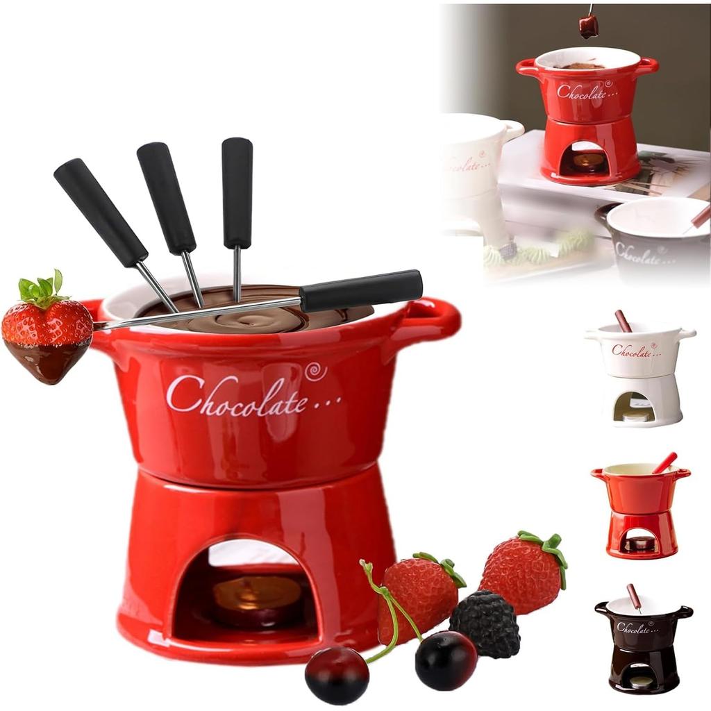 【Кружка для шоколадного фондю】Чашка для растапливания шоколада включает керамическую чашку для растапливания и вилку (свеча не входит в комплект), позволяя легко обмакивать фрукты, зефир и печенье для вкусного угощения.