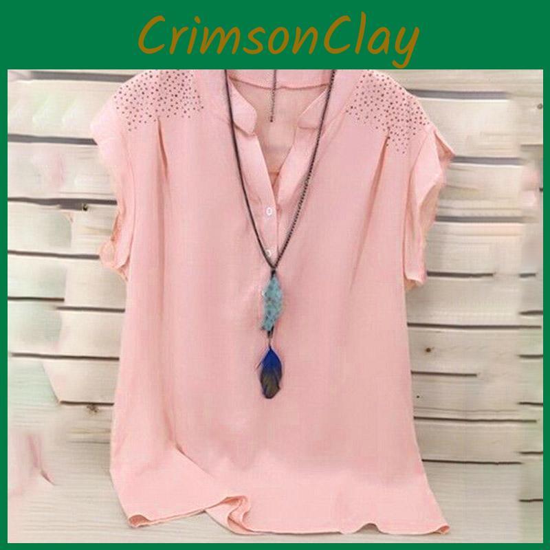 Элегантная летняя женская футболка с пуговицами, V-образным вырезом и коротким рукавом для полных женщин — купить товар онлайн с бесплатной доставкой до всему миру!